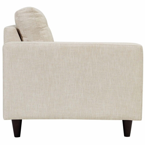 End the rule of unjust sovereignties that wage a useless war for your interiors. Empress leaves the would-be heiress of holistic furnishings in the dust with a design that rivals any competitor. Empress is heralded with deeply tufted buttons, plush cushions, and armrests that convey that perfect air of nobility. The solid wood legs come with plastic glides to prevent floor scratching, and the fine fabric upholstery leaves the recipients feeling richly rewarded.