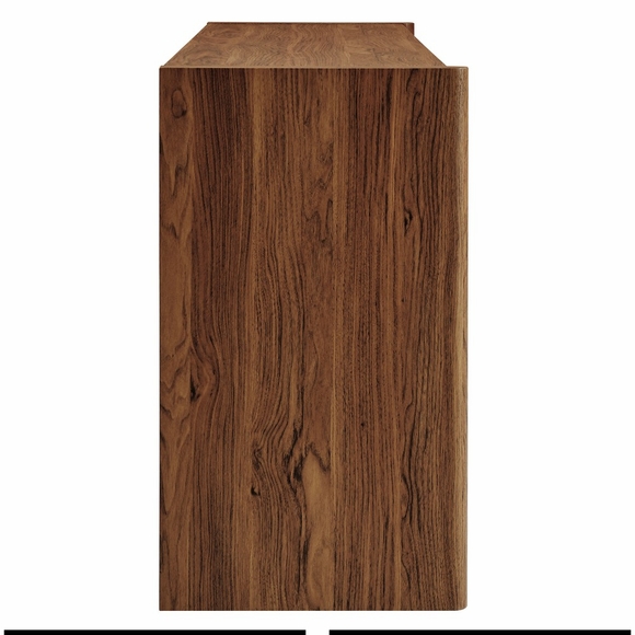 Simple in purpose, the Emric Wave Sideboard brings a soft, sculpted feel to functional storage. Made from a laminated wood blend with a smooth finish, this 4-door storage cabinet features slatted panels with a subtle wave design on a black backdrop that adds depth and movement. Four hinged doors open to reveal adjustable interior shelves, ideal for storing anything from dishware to electronics. With thick side panels that extend to the floor, this long buffet cabinet rests on a solid base that feels grounded from every angle. Whether styled as a modern sideboard in the dining room or a high TV console under a wall-mounted screen, this spacious cabinet brings character and convenience to any space. Includes foot glides for floor protection. Assembly required.