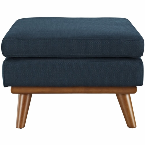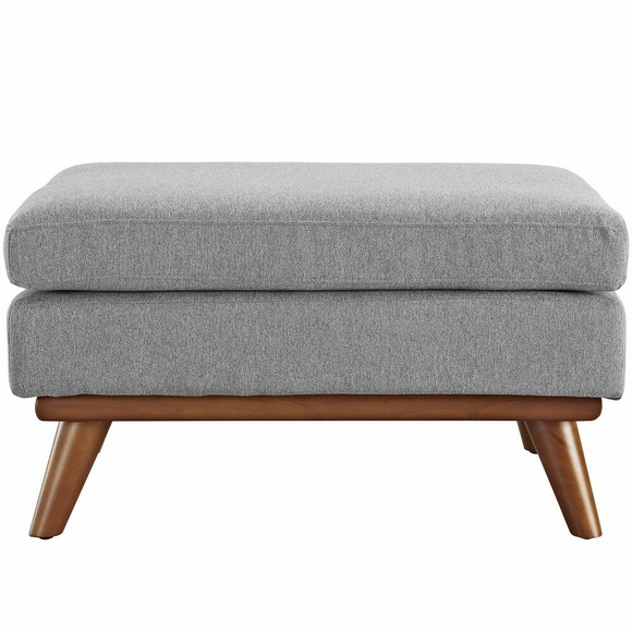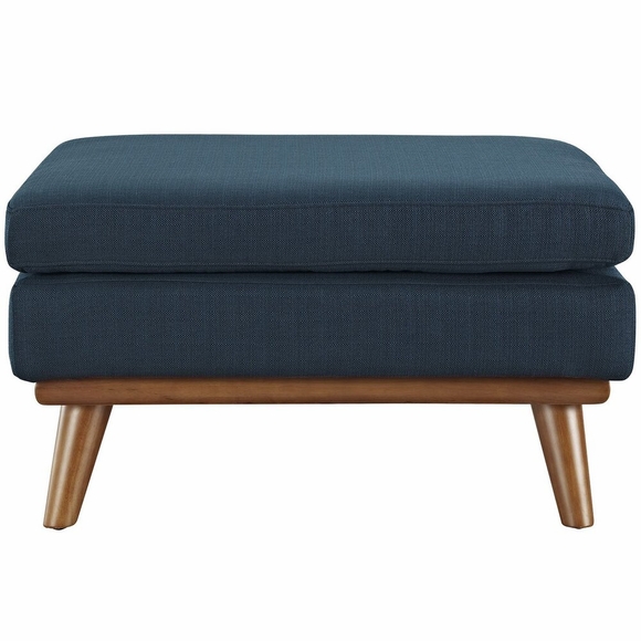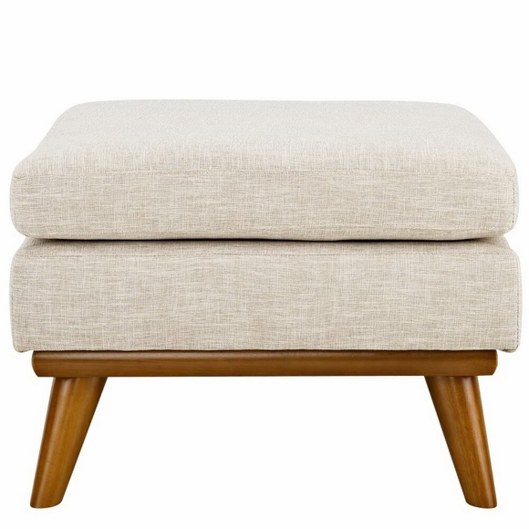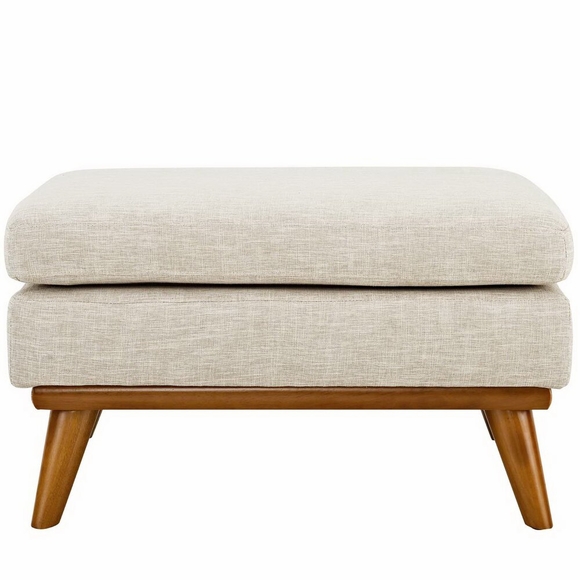 Gently sloping curves and plush cushion create a favorite lounging spot. Whether relaxing after a long day at work, settling in with coffee and brunch, or entering a spirited discussion with friends, the Engage ottoman is a welcome presence in your home. Rubberwood legs and frame supply a solid base to this quality upholstered fabric piece.