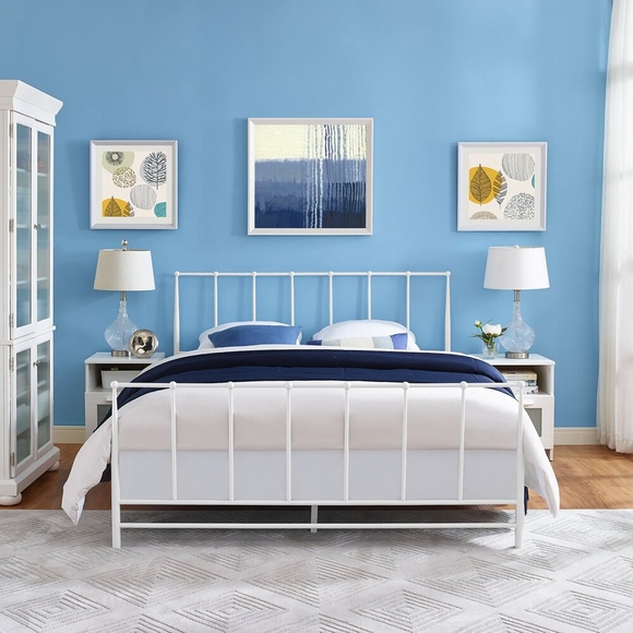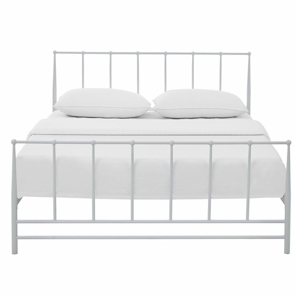 Introduce a serene and relaxed look with the exceptionally built Estate Platform Bed. Gracefully designed with integrated round finials, comprehensive headboard to footboard construction, charming tapered frame made of coated steel, non-marking foot caps, and two reinforced center beams with supporting legs for maximal stability, Estate is a nostalgic piece built upon the standards of design excellence. Reminiscent of nostalgic cottages and country homes, Estate's rail system eliminates the need for a box spring, and admirably supports mattress types such as memory foam, spring, latex, and hybrid. Weight capacity up to 1300 lbs. Mattress Not Included.