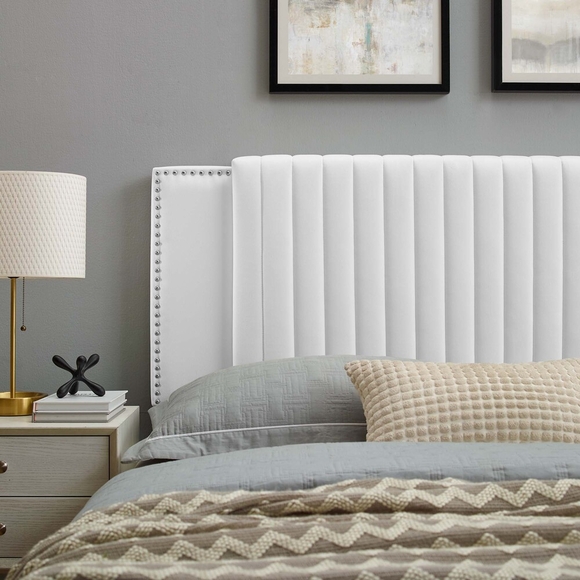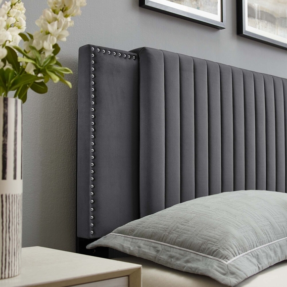 Introduce dimension and warmth into your child's bedroom, teen's college dorm room, or guest room with the Felicity Channel Tufted Performance Velvet Twin Headboard. This upholstered headboard displays glam deco design, precision, and character with raised vertical channel tufting and a silver nailhead trim making it a sophisticated centerpiece in mid-century modern or eclectic settings. Amplified with dense foam padding, this headboard for twin beds dispenses premium comfort for bedtime reading or conversing. A picturesque bedroom centerpiece, Felicity is a height-adjustable twin headboard built on a solid plywood and MDF frame and upholstered in stain-resistant performance velvet. Assembly required.