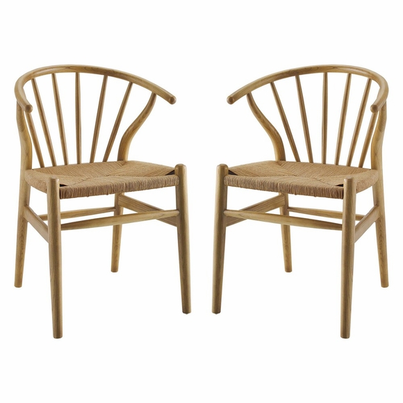 Bring Scandinavian style to your dining space with the Flourish Dining Side Chair Set of 2. Featuring a sweeping curved back, tapered wood legs, and classic spindles, the modern farmhouse design of this dining chair gets a contemporary update with delicate craftsmanship and stylish detail. The seat is made of paper rope, a new twine that is soft, anti-static and durable, while providing beautiful contrast and a soft texture. Complete with a solid wood frame and support rods make this piece a lasting choice for the dining room, kitchen table, or living area. Complement a variety of decor settings from mid-century to contemporary modern with this wood dining chair set. Weight Capacity: 286 lbs