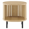 Add contemporary style to your home with the Fortitude Side Table. Its captivating oval shape, timber style strip design, straight round black metal legs, and open storage area make it a versatile addition to any room. Fortitude is perfect as a side table in your living room or as a nightstand in your bedroom. Made from MDF and particleboard with a wood grain finish, this side table features an easy-to-clean surface. With a top weight capacity of 200 lbs, it can hold your essentials with ease. Includes non-marking foot caps. Assembly required.