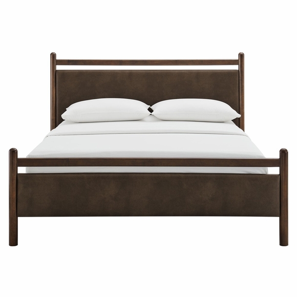 Refresh a master or guest bedroom with the Ginny King Size Vegan Leather Platform Bed, a clean, modern profile built on a solid wood frame with a cushioned faux leather headboard and footboard for a supportive, lounge-comfort feel. Smooth lines keep the look light, while padded touchpoints invite reading, relaxing, and easy wind-downs. A durable wood slat support system provides a sturdy, well-ventilated base for your king mattress-no box spring needed-making setup simple and the sleep surface comfortable night after night. Designed to mix with a range of bedding and decor, Ginny delivers a tidy, pulled-together look from day one. Assembly required.