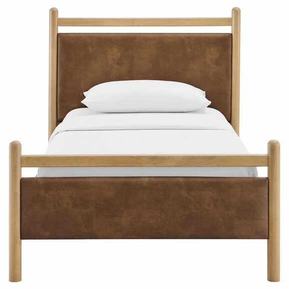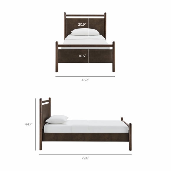 Refresh a kid's room or compact guest space with the Ginny Twin Size Vegan Leather Platform Bed, a clean, modern profile built on a solid wood frame with a cushioned faux leather headboard and footboard for a supportive, lounge-worthy feel. Smooth lines keep the look light, while padded touchpoints invite reading, relaxing, and easy wind-downs. A durable wood slat support system provides a sturdy, well-ventilated base for your twin mattress-no box spring needed-making setup simple and the sleep surface comfortable night after night. Designed to mix with a range of bedding and decor, Ginny delivers a tidy, pulled-together look from day one. Assembly required.