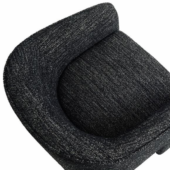 Distinctive and bold, the Greer Comfy Barrel Accent Chair with 3 Legs offers a fresh take on modern seating. Upholstered in soft boucle fabric, this upholstered living room chair features a barrel chair silhouette with a unique three-legged design that sets it apart. Its curved back flows into the gently angled arms, creating a cocoon-like seating experience that's as comfortable as it is stylish. With padding throughout, the Greer Accent Armchair provides a cozy place to relax or dine. Perfect for small spaces or as a statement-making wide dining chair, the lower backrest adds to its sleek, modern look. Whether you're creating a reading nook or upgrading your reception space decor, Greer's bold shape and contemporary flair make it an ideal choice for versatile seating. This barrel accent chair arrives fully assembled, ready to enhance your space immediately. Weight Capacity: 331 lbs.