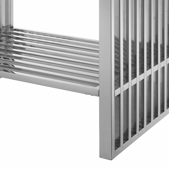 Introduce stark modernity to your bathroom space with the straight lines, polished detail, and angular profile of the Gridiron 30" Bathroom Vanity. Crafted with durable stainless steel, this open-concept vanity offers ample storage space underneath for towels, bathroom essentials, and more. This bathroom vanity features an artificial marble sink with an integrated countertop and 8" centerset faucet holes. A striking addition to the bathroom, this sink vanity rests on adjustable non-marking foot pads to protect flooring. Assembly required. Sink fixtures not included.