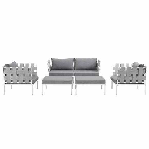 Engage life with Harmony Outdoor Patio Sectional Sofa Furniture Set. Enjoy casual conversation under the open sky with an all-weather waterproof furniture set that delivers an exceptional outdoor porch, patio, balcony or garden experience. An exceptional modern patio furniture set that exceeds expectations, this Harmony Outdoor Sectional set comes with long-lasting machine washable cushions, silk polyester seat back weave, square powder coated aluminum bases, tempered glass top tables, and non-marking foot caps. A sectional sofa that arranges according to the spontaneous needs of your guests, set your sights on open and inspired moments with the Harmony Outdoor Patio Collection.