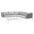 Engage life with Harmony. Enjoy casual conversation under the open sky with an all-weather waterproof furniture set that delivers an exceptional outdoor porch, patio, balcony or garden experience. An exceptional modern furniture set that exceeds expectations, Harmony comes with long-lasting machine washable Sunbrella® cushions, synthetic rattan seat back weave, square powder coated aluminum bases, tempered glass top tables, and non-marking foot caps. A sectional that arranges according to the spontaneous needs of your guests, set your sights on open and inspired moments with the Harmony Outdoor Patio Collection. Set Includes: 3 Corner Chairs, 2 Armless Chairs, 1 Coffee Table