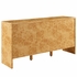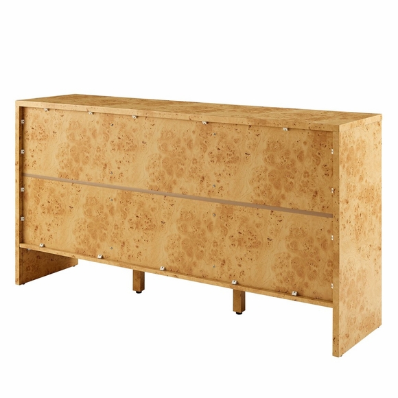 Discover the simplicity and allure of the Hudson 60 Inch Sideboard. Featuring a minimalist design, this modern storage cabinet blends seamlessly into any contemporary setting. Crafted and adorned with a burl wood paper laminate, this 60-inch cabinet exudes sophistication and durability. Featuring three soft-close doors, the spacious shelving area inside makes it a practical addition to any kitchen, dining area, or entryway. This versatile sideboard can also function as a media cabinet or high TV stand, accommodating wall-mounted TVs up to 66 inches. Designed with non-marking floor glides to protect your surfaces, the Hudson Sideboard with 3 Doors offers both style and enhanced functionality. Whether used as a kitchen sideboard, media cabinet, or an office credenza, the Hudson Burl Wood Buffet enhances any room with its contemporary elegance and sleek design. Assembly required.