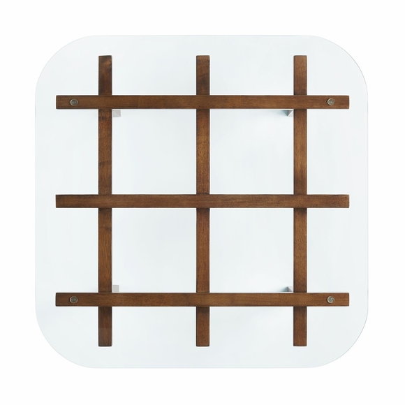 A bold mix of structure and simplicity, the Isby 35 Inch Glass Coffee Table features a clear tempered glass top with rounded corners, set over a grid-like frame made from solid rubberwood. The intersecting beams create a bold, sculptural look that blends easily with mid-century, minimalist, vintage, or retro-inspired interiors. Tempered glass offers added durability and safety, making it a practical wood glass centrepiece for everyday use. Non-marking foot caps help protect your floors, while the compact size makes it easy to style in a variety of spaces. Assembly required. Weight Capacity: 400 lbs