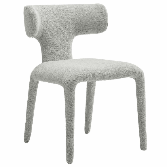 Bring the Kai Side Dining Chair into your home, a piece where bold, modern design meets plush, inviting textures. Combining boucle fabric, wood, and faux leather, the Kai Armless Chair features sharp, angular lines and a minimalist design. It's an ideal fit for various spaces, whether as a side chair in the dining room, an accent chair in the living room or as a stylish comfortable kitchen chair. Built on an ash wood frame and legs, this farmhouse dining chair showcases a unique rolled backrest upholstered in textured boucle fabric. This distinctive design element not only adds visual interest but also offers a soft, inviting texture that contrasts with the sleek lines of the wood accent chair's frame. The fixed cushion seat of this contemporary dining chair is covered in quality faux leather, offering just the right amount of firmness for long meals and conversations. Equipped with adjustable non-marking foot pins to protect your floors, the Kai Wood and Fabric Dining Chair requires no assembly and is ready to use straight out of the box. Weight Capacity: 330 lbs.