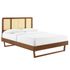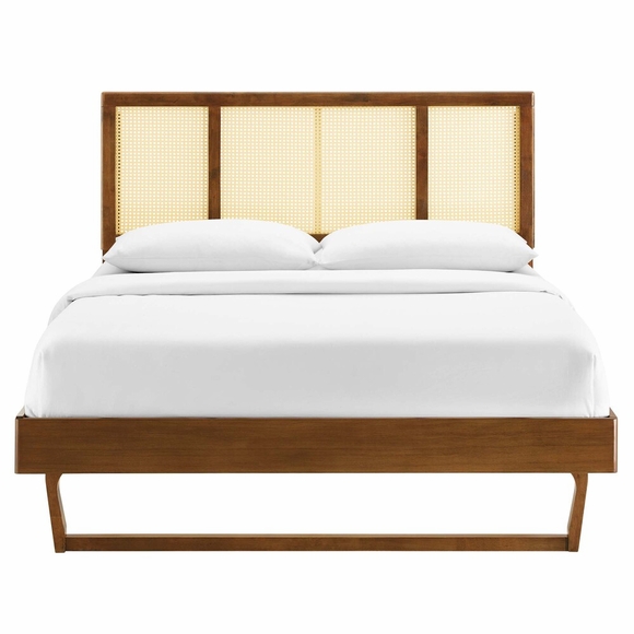 Infuse modern style into your master bedroom or guest room decor with the retro detail and organic aesthetics of the Kelsea Woven Cane Rattan Wood King Platform Bed. Bringing an airy, organic aesthetic to the bedroom, the king size headboard of this wood bed combines mid-century modernity and tropical style with its beautiful cane pattern and natural wood. This platform bed frame is a sturdy addition to the bedroom with a durable wood, MDF, and veneer construction and angular rubberwood legs. Eliminating the need for a box spring, this king bed is complete with a wood slat support system, reinforced center beam, and supporting legs that make it a lasting mattress foundation for memory foam, latex, innerspring, and hybrid mattresses. Assembly required. King Bed Frame Weight Capacity: 601 lbs.