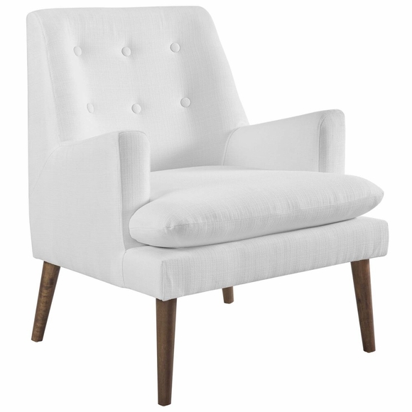 Unwind from daily stresses in the welcoming arms of the mid-century modern Leisure Lounge Chair. Leisure's high-density foam seat and button tufted back surround you with comfort. Whether curled up with a favorite novel or entertaining guests, with flared armrests and a striking silhouette, Leisure will stand out as a modern beacon of stylish repose. Outfitted with four walnut-stained wood dowel legs with non-marking foot pads and soft polyester fabric upholstery, Leisure complements a living room, lounge space or bedroom and supports up to 331 pounds.