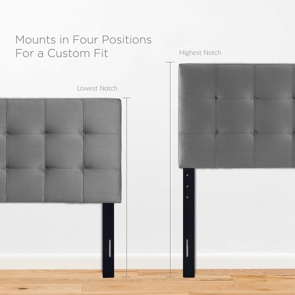Instill classic elegance and modern luxury with the Lily King Biscuit Tufted Performance Velvet Headboard. Lily features charming biscuit tufting for plush vintage glamour and timeless appeal. An elegant centerpiece to the master bedroom or guest suite, this upholstered velvet headboard for king bed frames provides a soft, stain-resistant update for premium comfort while relaxing, reading, or conversing in bed. Solidly constructed from plywood and fiberboard with dense foam padding, this king size velvet headboard comes with five mounting positions that are height adjustable from 45" - 52.5".