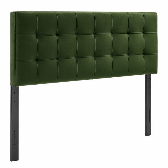 Update the bedroom with the Lily Queen Size Velvet Headboard, designed to feel soft, tailored, and easy to style. Padded with dense foam and wrapped in stain-resistant performance velvet, this upholstered headboard features biscuit tufting for a crisp, paneled look that works well in primary bedrooms or guest rooms. Built on a sturdy wood-blend frame, Lily provides comfortable support when lounging in bed while adding a clean, modern accent that pairs well with both minimal and classic decor. Finished with five mounting positions, the height can be adjusted to suit different setups. Assembly required.
