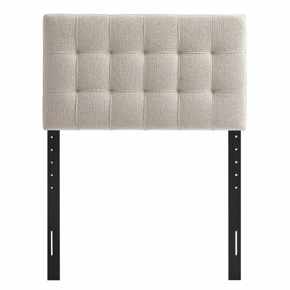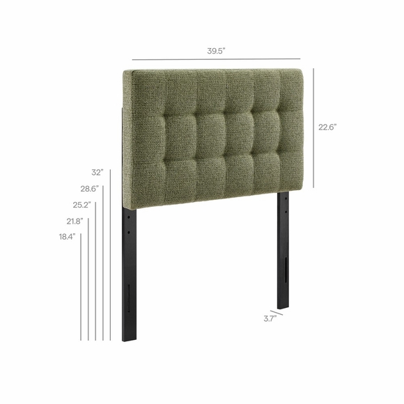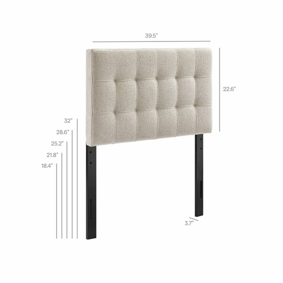Update the bedroom with the Lily Twin Size Fabric Headboard, designed to feel soft, tailored, and easy to style. Padded with dense foam and wrapped in textured chenille fabric upholstery, this twin headboard features biscuit tufting for a crisp, paneled look that works well in kids' bedrooms, dorm rooms, or guest spaces. Built on a sturdy wood-blend frame, Lily provides comfortable support when lounging in bed while adding a clean, modern accent that pairs well with both minimal and classic decor. Finished with five mounting positions, the height can be adjusted to suit different setups. Assembly required.
