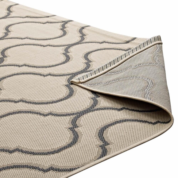 Make a sophisticated statement with the Linza Wave Abstract Trellis Indoor and Outdoor Area Rug. Patterned with an elegant design, Linza is a durable machine-woven polypropylene rug. Featuring an abstract lattice design with a low pile weave and gripping rubber bottom, this all-weather area rug is a perfect addition to the outdoor patio, porch, deck, or inside the house in the living room, bedroom, kitchen or dining room. Linza is a family-friendly fade and stain resistant rug with easy maintenance. Hose down or vacuum periodically. Create a contemporary play area for kids and pets in high-traffic areas while protecting your floor from spills and heavy furniture with this carefree decor solution.