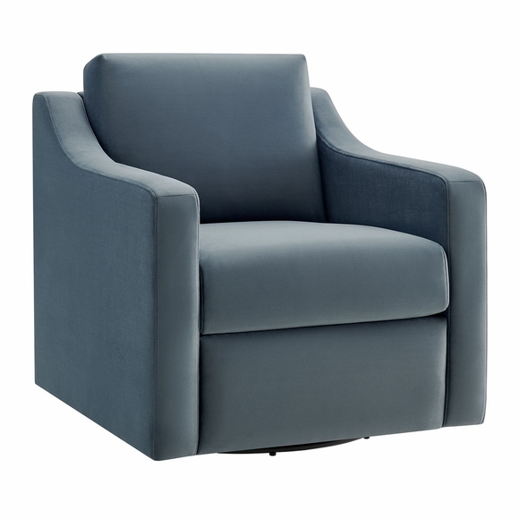 The Liora Performance Velvet Swivel Accent Chair combines modern elegance with exceptional comfort. Covered in stain-resistant performance velvet, the swivel chair's plush upholstery offers a soft, luxurious feel from every angle. The armrests feature a unique, gently curved design that flows seamlessly from the back, providing both support and a striking visual appeal. A solid metal swivel base is subtly concealed, giving the chair the appearance of floating while allowing smooth rotation in any direction. The velvet armchair also incorporates a zigzag spring for added durability and comfort, while the back and seat cushions are removable for easy maintenance. A great fit for living rooms, bedrooms, or reading nooks, the Liora Velvet Swivel Accent Chair offers both beauty and utility, with no assembly needed. Weight Capacity: 500 lbs.