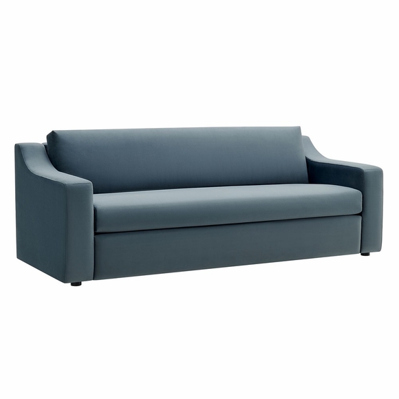 Sink into the cozy comfort of the Liora 87 Inch slope arm sofa, where a modern sofa design meets plush support. Upholstered in stain-resistant performance velvet, this deep seat sofa features dense foam padding and pocket spring support with zigzag coils, ensuring a soft yet supportive seat that retains its shape over time. Its low-profile, sloped track arms gently frame the removable cushions, while the subtly recessed legs give it a floating, streamlined look. Whether you're looking for a three seater couch to update your living room seating, a comfy velvet couch for the bedroom, or an office sofa that invites relaxation, Liora fits naturally into any setting with its graceful lines and mid century modern sofa appeal. Some assembly required. Weight Capacity: 800 lbs.