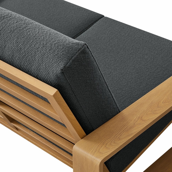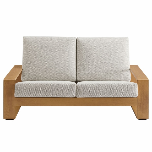Unwind in sculptural sophistication with the Lirienne Outdoor Patio Loveseat. Designed for modern relaxation, this statement-making 2-seater sofa showcases a sleek, rectangular frame crafted from durable powder-coated aluminum with a faux wood pattern, offering both resilience and style. The deep, angled seat and plush foam cushions invite you to sink into lasting comfort, while the smooth, weather-resistant upholstery is stain-resistant and easy to maintain with removable, washable covers. The Lirienne Aluminum Small Outdoor Couch is as practical as it is stylish, making it the perfect outdoor retreat for backyard lounging. Whether placed on a sun-drenched deck or a shaded patio, this outside couch brings an air of refined ease to any alfresco setting. Weight Capacity: 501 lbs.