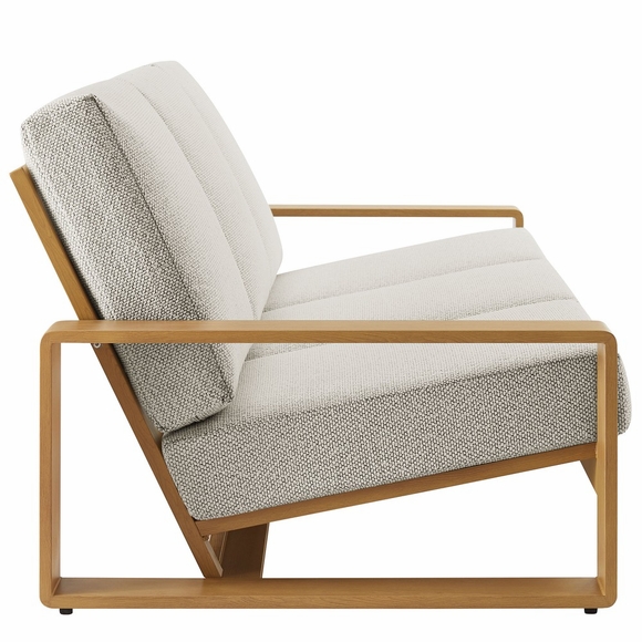 Unwind in sculptural sophistication with the Lirienne Outdoor Patio Sofa. Designed for modern relaxation, this statement-making 3-seater outdoor couch showcases a sleek, rectangular frame crafted from durable powder-coated aluminum with a faux wood pattern, offering both resilience and style. The deep, angled seat and plush foam cushions invite you to sink into lasting comfort, while the subtle textured weave upholstery is stain-resistant, weather-resistant, and easy to maintain with removable, washable covers. The Lirienne Aluminum Patio Sofa is as practical as it is stylish, making it the perfect outdoor retreat for backyard lounging. Whether placed on a sun-drenched deck or a shaded patio, this all-weather aluminum outdoor patio sofa brings an air of refined ease to any alfresco setting. Weight Capacity: 750 lbs.