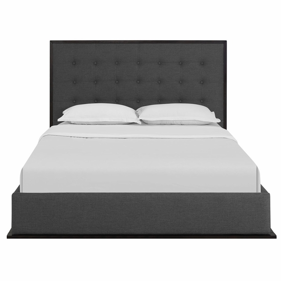 Refresh your bedroom decor with the Madeline Platform Queen Bed in Fabric. Made with a wood frame upholstered in fabric, Madeline lays snug on your floor with solid wood slats and a center supporting bar featuring two support legs for ultimate stability. Due to the wooden slat support system, the use of a box spring is unnecessary. Madeline supports memory foam mattresses such as our Aveline series and displays an elegantly tufted headboard and bold, chic look perfect for modern bedrooms. Mattress not included. Assembly Required.