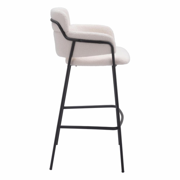 This barstool has a beautifully wrapped seat and back with a fine frame. This chair combines mid-century modern with glam and decor elements and works well in space, residential, or hospitality.