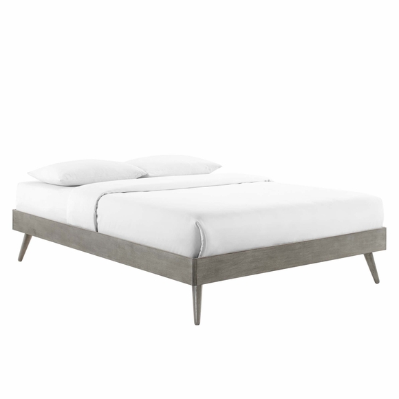 Incorporate modern style and comfortable sleep in the bedroom with the Margo Full Platform Bed. Inspired by mid-century design, this full size bed frame boasts retro detail with contemporary accents and organic aesthetics to bring trending modernity to your guest bedroom or teenager's bedroom. Adapting to any decor theme with the option of interchangeable headboards, this bed frame is compatible with the Robbie, Draper, Archie, and Collins headboard collections. This platform bed frame is a sturdy addition to the bedroom with a durable wood, MDF, and veneer construction and four splayed rubberwood legs. Eliminating the need for a box spring, this full bed is complete with a wood slat support system, reinforced center beam, and supporting legs that make it a lasting mattress foundation for memory foam, latex, innerspring, and hybrid mattresses. Assembly required. Full Bed Frame Weight Capacity: 601 lbs.