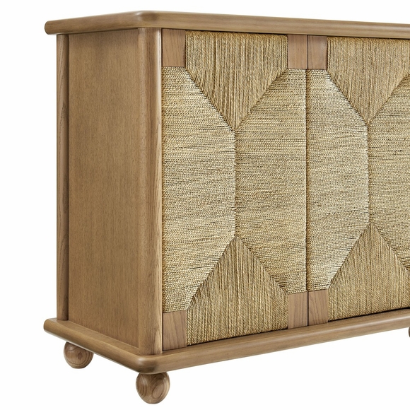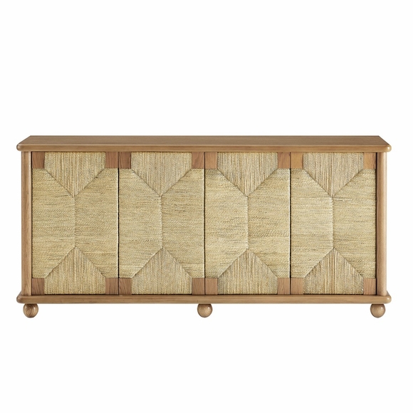 Designed for flexibility, the Marola cabinet combines generous storage with a clean, modern look. Crafted from solid oak wood and accented with woven seagrass doors, it brings a light, airy touch that feels both fresh and timeless. Behind four doors, adjustable shelves offer plenty of room for dinnerware, linens, or media. Measuring 71 inches wide, this cabinet with doors and cable management transitions easily between spaces, serving as a sideboard buffet cabinet in the dining room, a storage cabinet in the living room for decor and electronics, or even as a TV stand for wall-mounted TVs. Weight capacity; Top : 346lb, Top Shelf : 20lb, Bottom Shelf : 20lb.