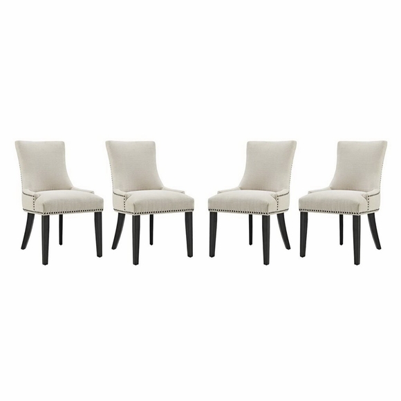 Inspire your decor with the Marquis Dining Side Chair. Marquis is fashioned with a chic hourglass shaped back, studded nailhead trim, non-marking foot caps, tapered wood legs, and a regal seat generously padded in foam and upholstered in polyester fabric. Marquis works well in both modern and traditional dining rooms.