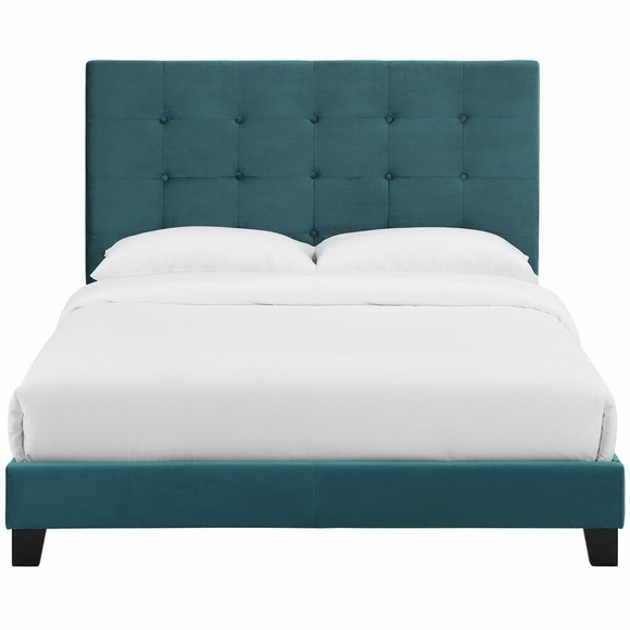 Clean lines, a straightforward profile, and classic button tufting define the Melanie Full Platform Bed. Designed with chic elegance and contemporary style, Melanie's base and headboard come upholstered in luxurious stain-resistant performance velvet, while the sturdy wood frame and legs offer lasting durability. Eliminating the need for a box spring, this platform bed is complete with a wood slat support system and reinforced center beam creating the perfect mattress foundation for memory foam, spring, latex, and hybrid mattresses. A sleek and sophisticated centerpiece to a teen's bedroom, guest room or dorm, effortlessly transform bedroom decor with the luxe look of this modern platform bed. Includes non-marking foot caps. Bed Weight Capacity: 800 lbs.