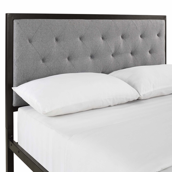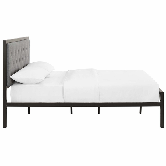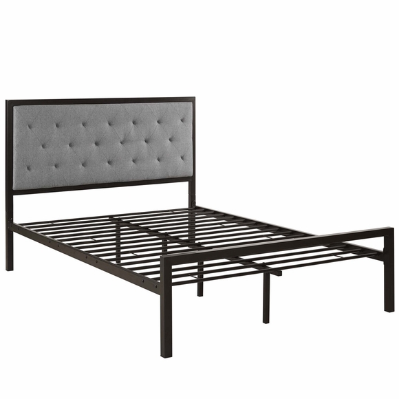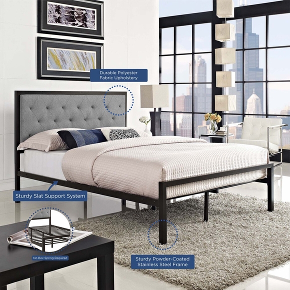 Sleep peacefully with a platform bed solid in both style and construction. Mia comes with a powder-coated steel frame that offers sturdy and long-lasting support, while the fabric headboard with deep tufted buttons adds a touch of magnificence to an otherwise minimalist design. The Mia Platform Full Bed does not require a box spring. Full mattress not included.