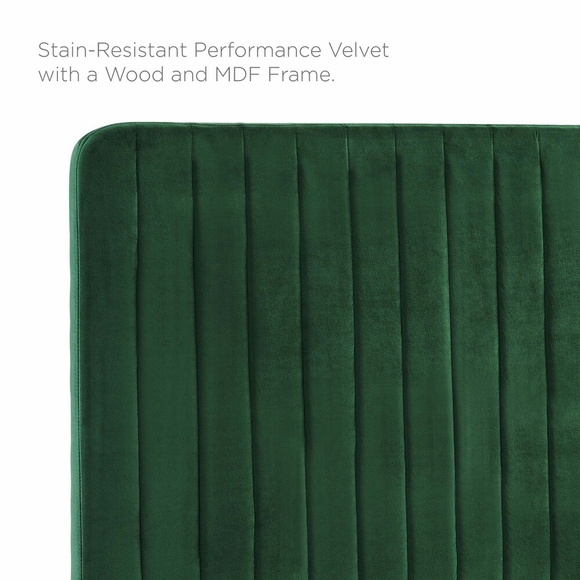 Elevate your master bedroom or guest bedroom style with the luxe texture and glam deco style of the Milenna Performance Velvet King/California King Headboard. Upholstered in stain-resistant performance velvet and adorned with channel tufted detail, this headboard is padded in dense foam to offer supportive comfort while sitting up in bed resting, relaxing, reading, or watching TV. A beautiful backdrop for a variety of bedding styles, this height-adjustable headboard affixes to king or Cali king beds in multiple mounting positions. Assembly required.