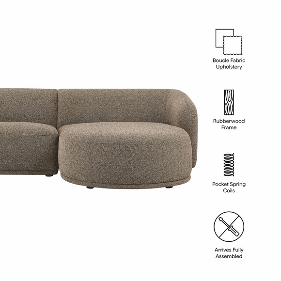 One - Monica 2 Piece Right Facing Boucle Fabric Modular Sofa with Chaise