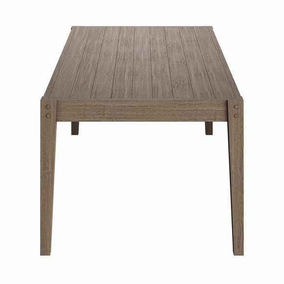 Soak in nature's beauty gathered around the Northlake Outdoor Dining Table. Crafted from durable teak wood, this 83-inch rectangle patio dining table showcases clean lines and a spacious design, comfortably seating up to eight guests. Its smooth plank-style tabletop offers a modern yet timeless aesthetic, while the sturdy tapered legs provide stability and support for outdoor dining and entertaining. Designed for patios, decks, and alfresco spaces, this contemporary outdoor teak dining table blends elegant craftsmanship with lasting durability. Assembly required.