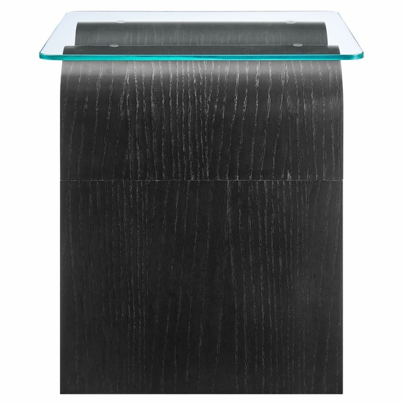 The Ondine Glass Top Side Table stands out with its unique retro design, adding an artistic touch to any space. Its trendy frame, shaped in a bold wave-like form across the top, is crafted from durable materials and finished with a natural ash veneer, providing a rich, textured look or a solid color finish to add some flair to your space. The squiggle-shaped foundation of this minimalist end table brings a sense of movement and fluidity, beautifully contrasted by the clear tempered glass top above it. The glass surface allows the wavy base to remain fully visible, making it the focal point of the design. The rounded edges on this glass side table adds softness to the overall aesthetic, while the clear plastic anti-skid grips offer stability to ensure the glass is secure. The Ondine square accent table is equipped with leveling, non-marking feet that keep the clear side table securely in place without damaging your floors. Whether used as a small drink table in the living room, a plant stand or a boho glass nightstand, this vintage style side table serves as a conversation piece and complements both contemporary and vintage-inspired decor. Glass Accent Side Table Weight Capacity: 88 lbs.