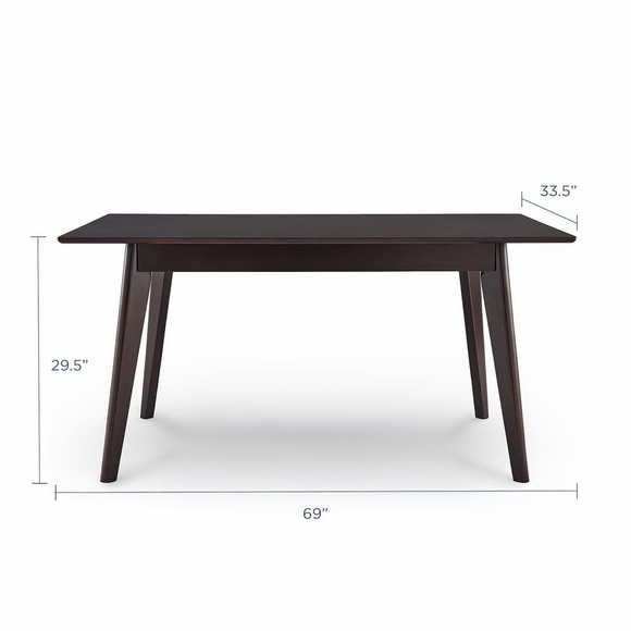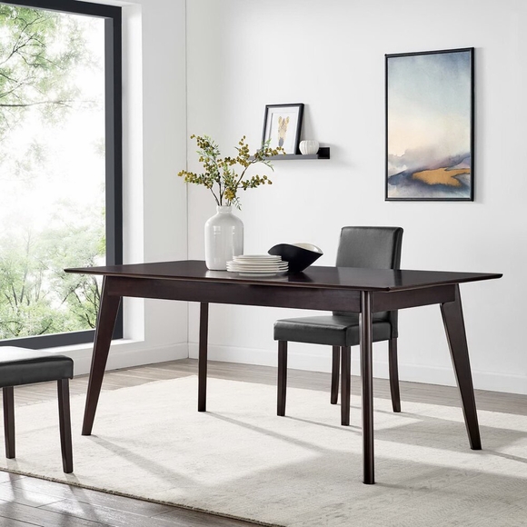 Explore new vistas with the Oracle 69" Rectangle Dining Room Table. Sturdily constructed from wood veneer and MDF with four tapered wood legs, this dining table possesses a sleek mid-century modern style. The simplicity and quietude of the Oracle Dining Table create the ability to effortlessly enhance any dining room, kitchen, breakfast nook, or dining area decor. Seats up to 8 people. Assembly Required.