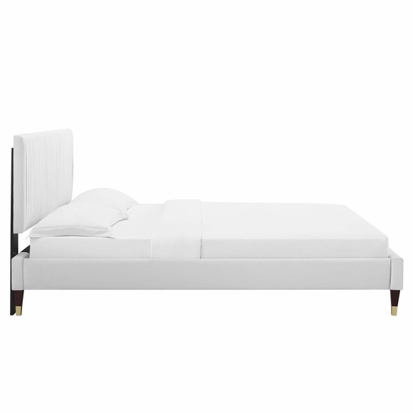 Reimagine a guest bedroom or teenager's bedroom decor with the Peyton Channel Tufted Performance Velvet Full Bed. Rich in vintage modern elegance and glam deco style, the full headboard of this platform bed features retro channel tufting, luxe velvet texture, and dense foam padding to offer a supportive place to rest while sitting up in bed. A full size bed covered in stain-resistant performance velvet, this platform bed is a sturdy mattress foundation for memory foam, innerspring, latex, and hybrid mattresses. Eliminating the need for a box spring, the MDF frame of this full bed is complete with a wood slat support system crafted with poplar for lasting durability and support. This slatted bed frame rests on black wood legs with non-marking foot caps and includes a reinforced center beam with two support legs for enhanced stability. Assembly required. Weight Capacity: 800 lbs.
