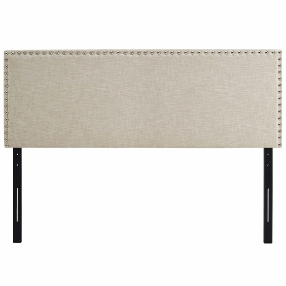 Enhance your bedroom with the elegantly designed Modway Phoebe Fabric Upholstered Queen Headboard. Minimalist and chic, Phoebe Queen Headboard transforms with sleek lines and a stunning nail button trim accented in silver. Phoebe is a headboard for queen beds that features a solid wood frame, adjustable wood legs, soft linen fabric upholstery, and dense foam padding for ultimate support.
