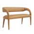 Experience the perfect blend of modern sophistication and luxurious comfort with the Pinnacle Vegan Leather Upholstered Accent Bench. Whether used as a dining bench or accent bench, its distinct silhouette showcases a curved backrest and an open design that effortlessly enhances your dining or living space with luxe style. This modern bench indulges your senses with its dense foam padding, upholstered in a smooth, quality vegan leather. Non-marking plastic foot pins ensure your flooring remains free from scuffs and scratches. With no assembly required, this bench offers a stylish statement instantly. Weight Capacity: 330 lbs.