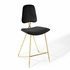 Survey your surroundings with confidence with the Ponder Upholstered Performance Velvet Dining Room Bar Stool. Ponder's padded high-density foam seat gently slopes upward providing embracing comfort while the tapered back provides ergonomic support. Finely upholstered in stain-resistant performance velvet polyester, the Ponder Dining Stool makes a striking statement with its gold stainless steel base featuring two angled front mid-century legs and a rear tripod base. Accentuate your modern decor with a contemporary dining room bar stool that elevates any empty area of your home. Bar Stool Weight Capacity: 330 lbs.