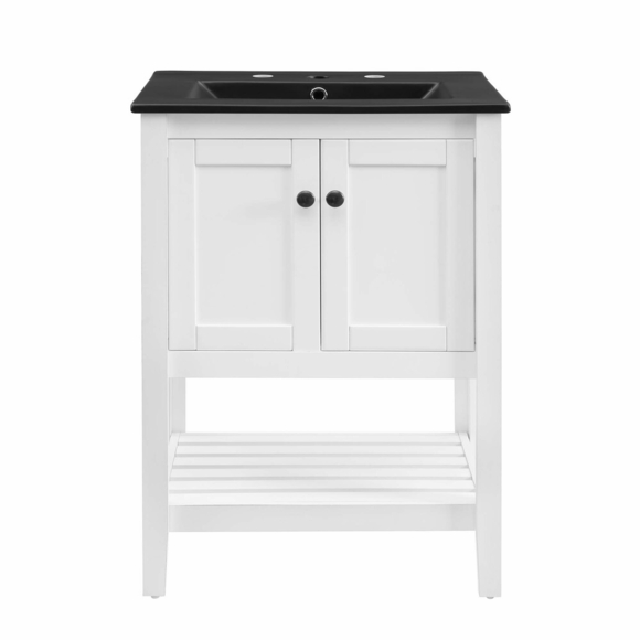 Set Includes: One - 24" Ceramic basin topOne - Prestige 23" Bathroom Vanity Cabinet