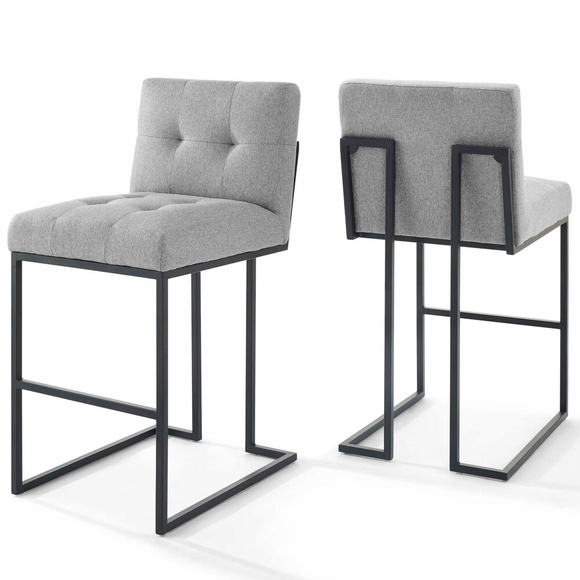 Maximize your dining room decor with Privy Bar Stool Set of 2. A glam deco bar stool, Privy features soft and durable fabric upholstery for a streamlined modern look. This stylish bar stool rests atop a sleek matte black stainless steel geometric base with a footrest that will elevate your bar and dining experience. No assembly required. Bar Stool Weight Capacity: 331 lbs