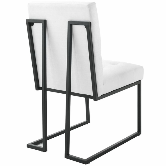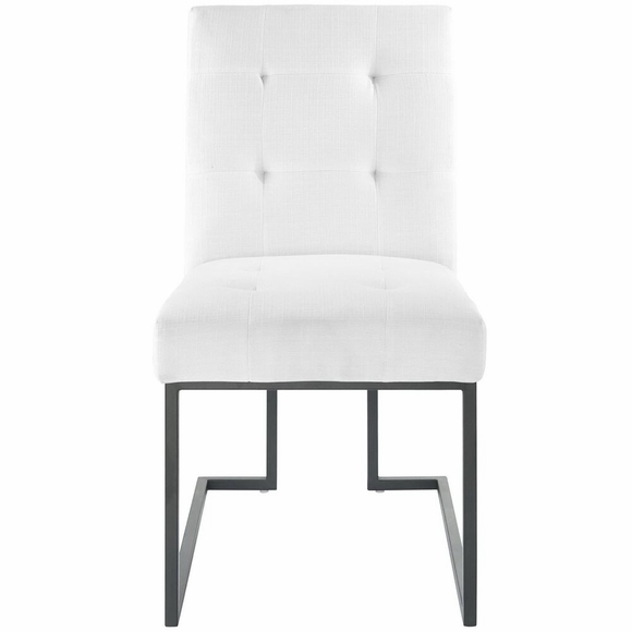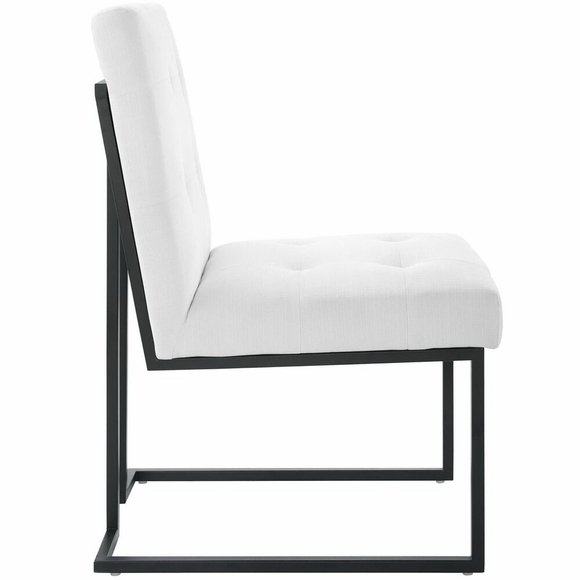 Maximize your dining room decor with Privy. A glam deco dining chair, Privy features soft polyester fabric upholstery for a streamlined modern look. This modern dining chair rests atop a sleek matte black stainless steel geometric base that will elevate your dining experience. No assembly required. Chair Weight Capacity: 331 lbs.