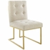 Maximize your dining room decor with Privy. A glam deco dining chair, Privy features soft polyester fabric upholstery for a streamlined modern look. This modern dining chair rests atop a sleek gold stainless steel geometric base that will elevate your dining experience. No assembly required. Chair Weight Capacity: 331 lbs.