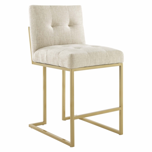 Maximize your dining room decor with Privy. A glam deco kitchen counter stool, Privy features soft and durable fabric upholstery for a streamlined modern look. This counter height stool rests atop a sleek gold stainless steel geometric base with a footrest that will elevate your dining experience. No assembly required. Counter Stool Weight Capacity: 331 lbs.