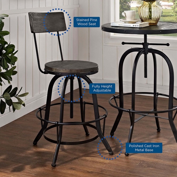 Gather the essentials and speak about what matters on the Procure industrial modern bar stool. Constructed of a metal frame and pine wood seat and back, Procure has all the necessities while exhibiting a refined touch of modernism. Complete with a foot back for added support, Procure conveys a rustic aestheticism while also imbuing a silent yet hopeful resolve for the future.