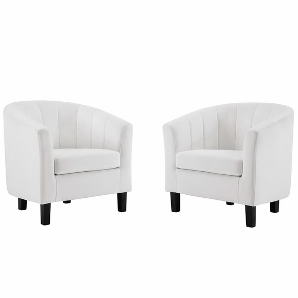 A fresh outlook on a familiar classic, Prospect Performance Velvet Armchair Set of 2 brings intrinsic luxury to your living space. This barrel back armchair set comes upholstered in stain-resistant performance velvet fabric, and boasts chic channel tufting, updating the Chesterfield-inspired profile with retro modern design elements. The densely padded removable seat and backrest grant approachable comfort that beckons guests to sit and stay a while. Maximum Weight Capacity: 331 lbs