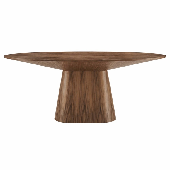Gather around the Provision 75" Dining Table to enjoy good food and conversation with friends and loved ones. Make a striking statement in your dining space with this bold yet simplistic modern design. This oval table features a sturdy MDF construction with beautiful wood grain veneer. This 75" dining table comfortably accommodates six dining chairs. Includes a non-marking felt mat to protect flooring. Assembly required. Weight Capacity: 330 lbs.